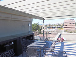 Roof Gardens are an excellent response to the COVID-19 Pandemic. They create outdoor working and meeting spaces that have the best possible air circulation. This project had challenges as well as opportunities. With two roofs available, the first location focused on creating an ADA compliant space on the third floor roof (accessed by elevator and including a ramp) that looks toward the Western hills. We added glass partition walls that provide protection from the wind while preserving the views. The second location above the fourth floor is accessed by stair and has views to the East. This location also has wind challenges, but glass partitions were not allowed due to City ordinances. The existing wall of the stairwell provides some protection and a location for storage and electrical outlets. Landscaping is installed in durable Corten ® steel planters with lightweight foam filler below the plants and soil.